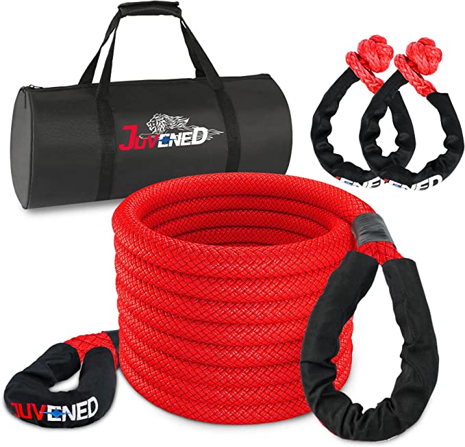 Check Price: JUVENED 7/8″×30′ Kinetic Recovery & Tow Rope with 2 Soft Shackles