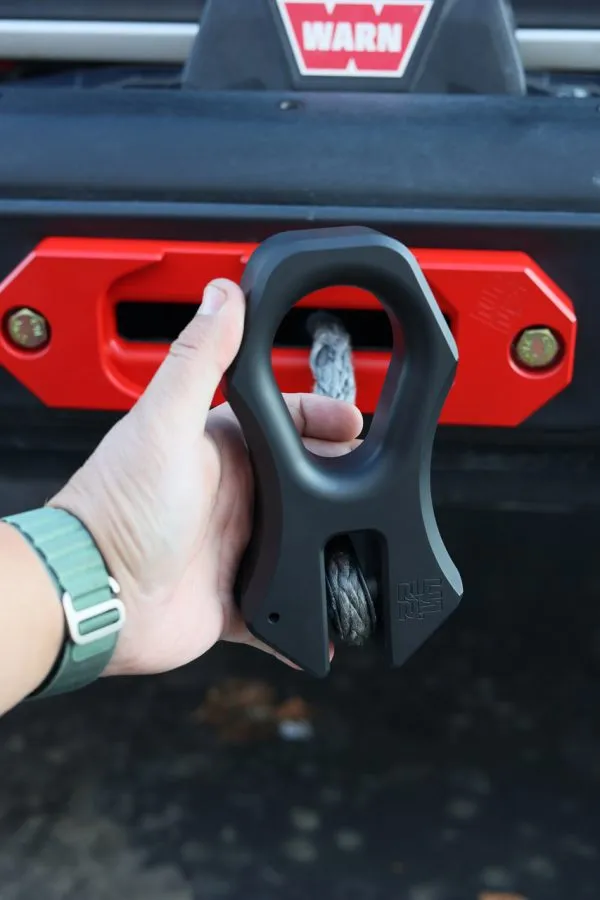 The eagerly awaited 41.22 winch shackle is here! This premium shackle was meticulously constructed from a single block of 6061-T6 aircraft-grade aluminum using precision CNC machining. Compared to exposed hooks, which might come loose if not kept taut, its enclosed design is stronger and safer. The shackle also contains a sizable eyelet that makes it simple to connect it to other soft shackles of different sizes without the use of additional d-rings.